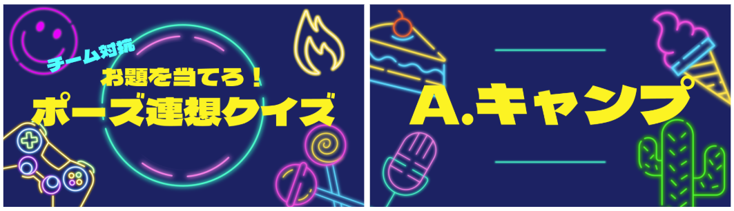 『キャンプ』のお題に対して代表者それぞれがポーズ。回答者はポーズに対して「おにぎり?」「いや、山では?」など予想で盛り上がり、その後「テントを表現してました!」と正解発表でさらにひと盛り上がり。最終的に同率1位のチームが複数あり、現地とリモートの画面越しのじゃんけんで優勝が決定するなど、最後まで大盛り上がりでした。