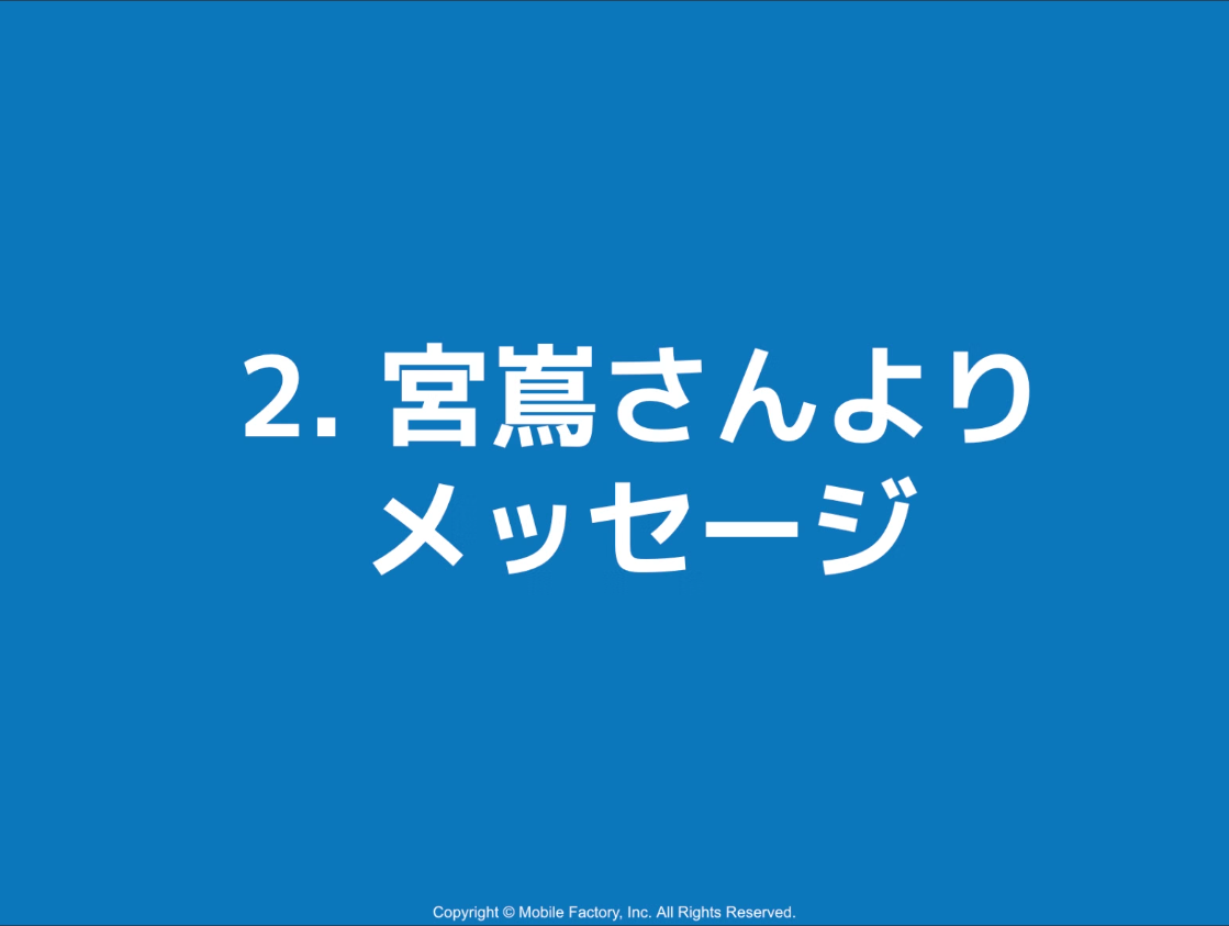 画面越しではありますが、全社一丸となって新しい仲間を迎え、場所を選ばず「ワクワク」しながら繋がる、モバファクらしい一体感に包まれた時間となりました。